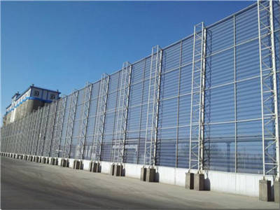 关键用作矿区,焦化厂发电厂等中小企业厂房的储煤厂的防风抑尘;海港船埠储煤厂及各式料场;钢铁、制造质料、建材等中小企业各式室外料场的抑尘;作物防风沙化天气处境防尘等蛮横天然处境;铁线路、飞速公路煤集运站储煤场、制造物制造工地、途径扬尘、国道两头等。单层挡风抑尘围墙抑尘效益可约65~85%,双层挡风抑尘墙效益可高达95%以上。